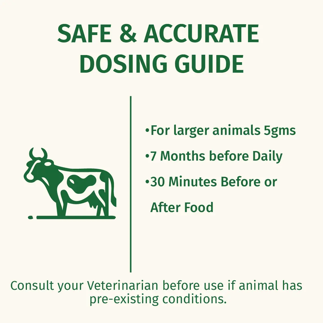 ✅ Small Animals: 3 gm- 1 Time Daily from 6th month of pregnancy